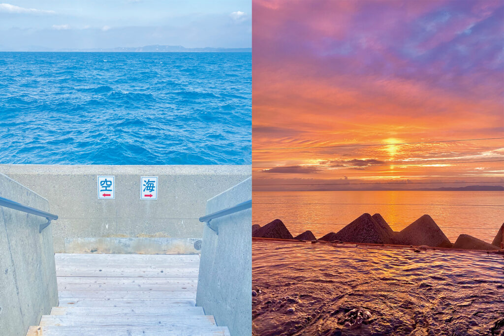 夕暮れ時には、橙色に染まる海と空を眺めながらの入浴が格別。小浜温泉の中でも特に自然との一体感を楽しめる温泉として人気です。