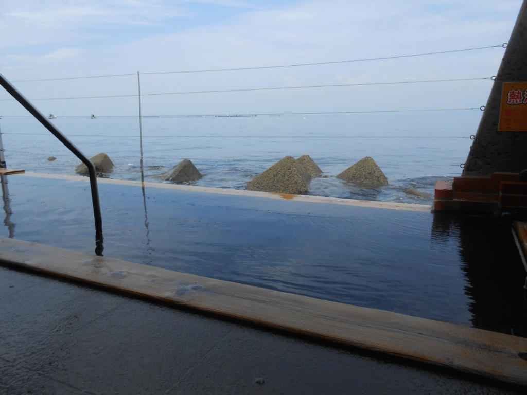 魅力は何といっても海がすぐ目の前に広がるロケーション。満潮時には湯船から海面までわずか20センチほどという迫力で、まるで海に浸かっているかのような特別な体験ができます。波の音を間近に聞きながら、絶景と温泉を独り占めできる贅沢はここならではです。